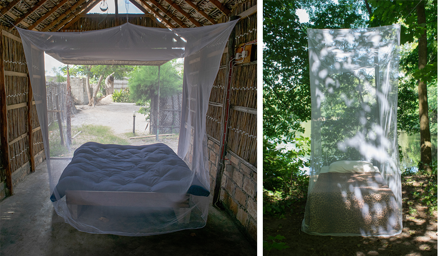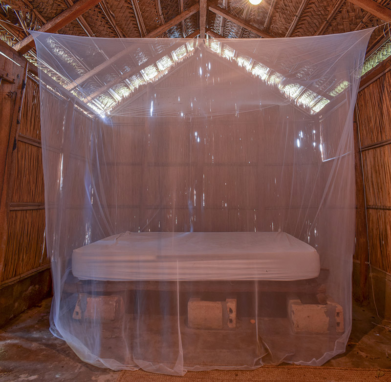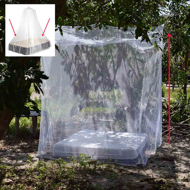 GUTES NETZ = KEIN EINGANG: Wir verzichten bewusst auf einen Einlass für unsere Netze. Ein offener Eingang reduziert erheblich den Sinn eines Mosquito-Netzes. Auch noch so gut verschlossen, passiert es, dass der Spalt in der Nacht auseinandergezogen wird und so den Plagegeistern Tür und Tor öffnet.